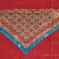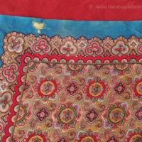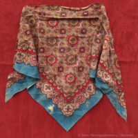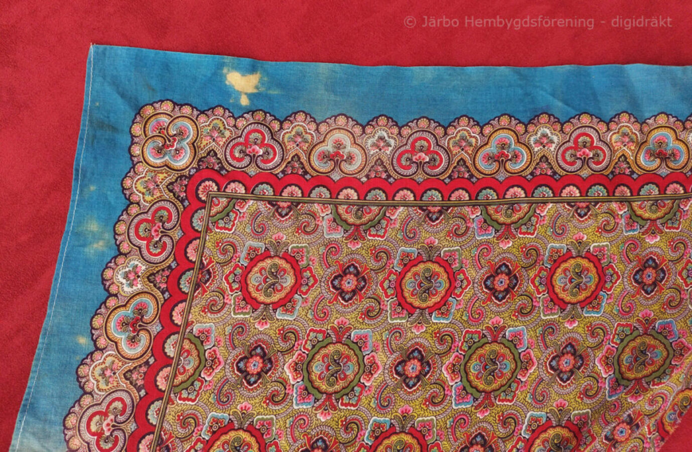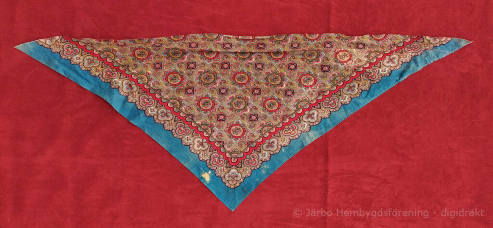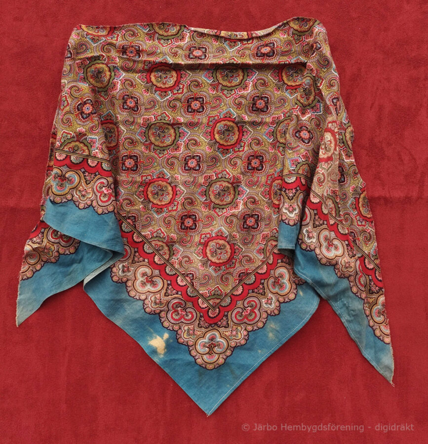 Halskläde i tresnibb användes av männen för att hålla uppe skjortkragarna, under västen. Detta är av bomull, s.k. kattun.